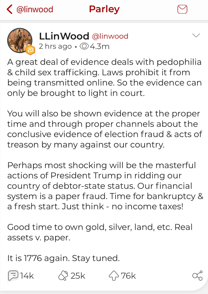 Lin Wood left this message for us today:
