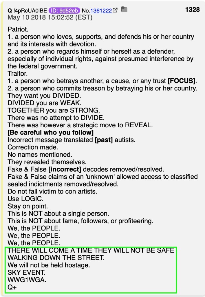 Q anon said that.