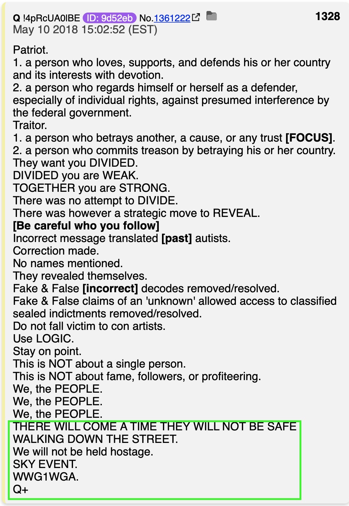 Q anon said that.