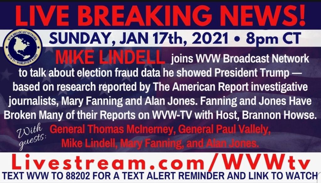 This interview with Mary Fanning (a real journalist not some YouTube wanna be Go Fraud Me you know what) is stellar. She and Mike Lindell killed it last night. Hope you can listen as Mike really told it like it is! Humility! Patriot! This website (wvwtv.com is constantly being attacked so if you have trouble, it’s not just you. Keep checking back often).