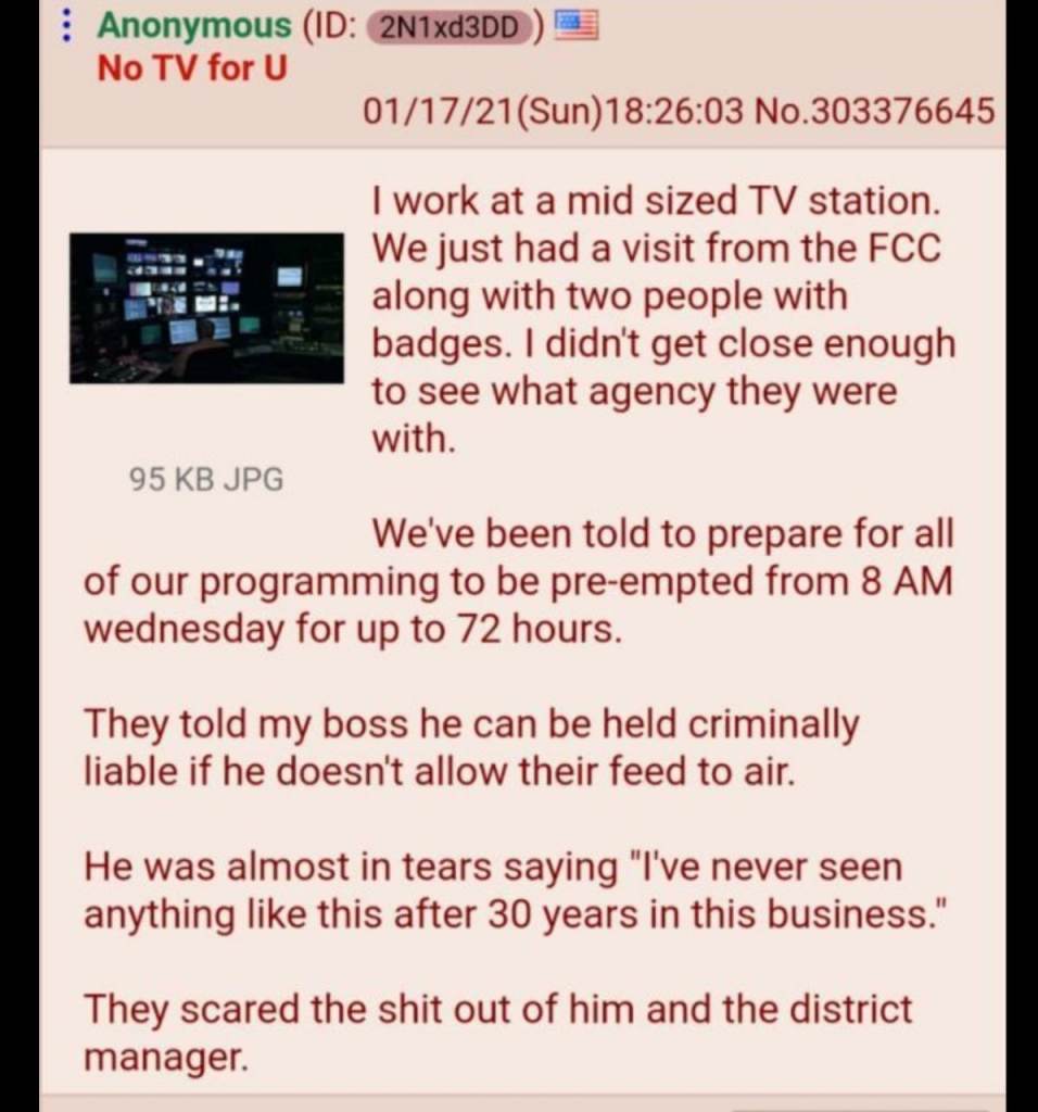 An anon post from 1.17.21 – could it be that they are really planning on airing the crimes of these sick, vile vermin for all to see? Praying it is so!