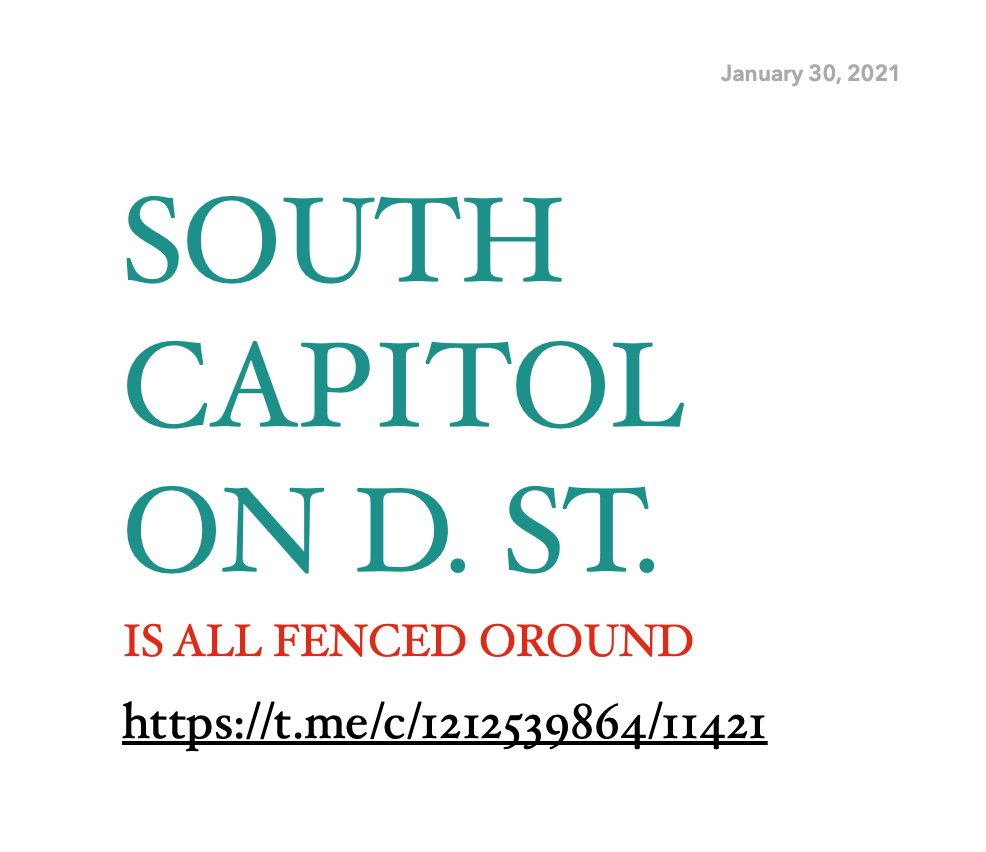 (Please note that this thread was supposed to accompany yesterday’s live videos of the nation’s capital by Tod featured on Saturday’s post called Hold The Line! so please revisit by clicking this link and viewing the videos if you have not already done so. Thank you).