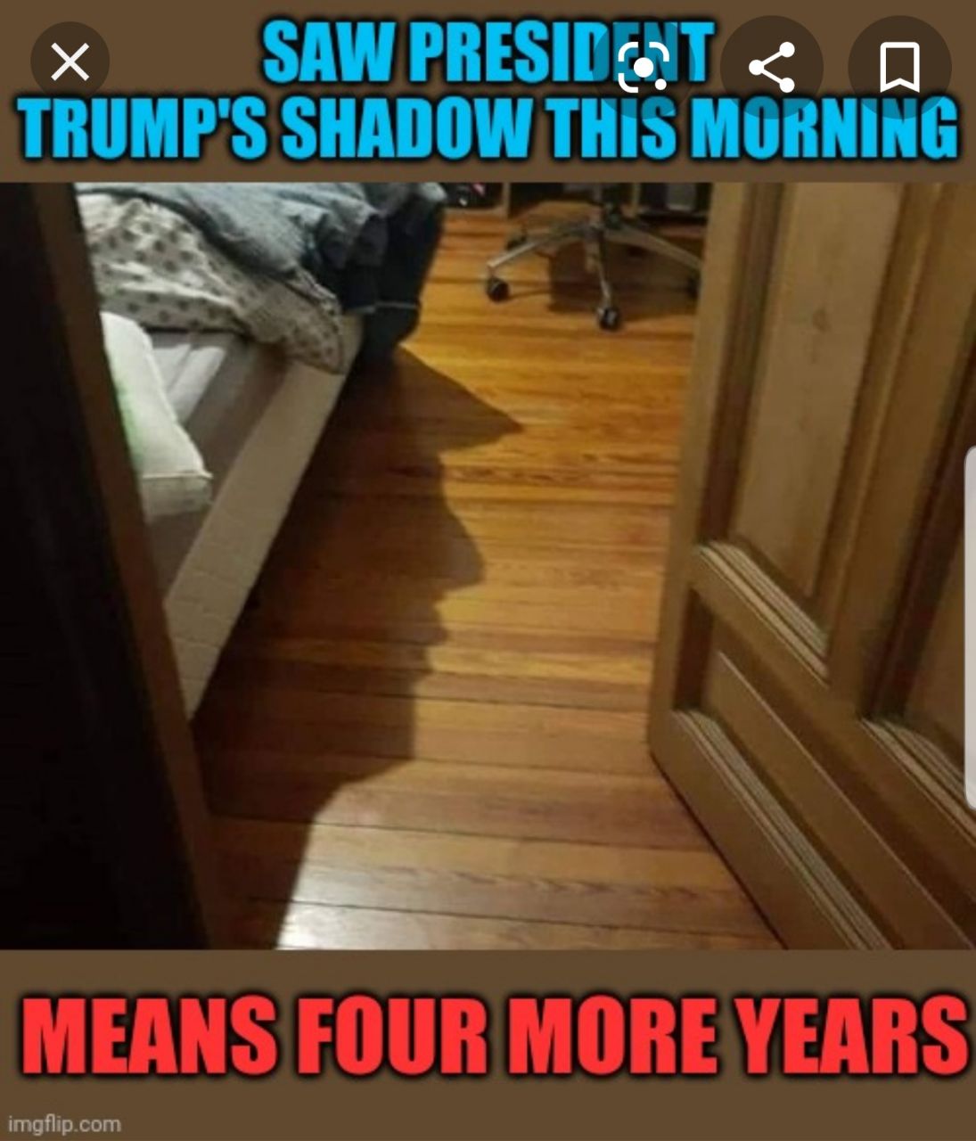 The meme on seeing Trumps shadow means 4 more years is an INSTANT CLASSIC! most-steal-worthy : lol it will surely make the lunatic left squirm in their antipanties.