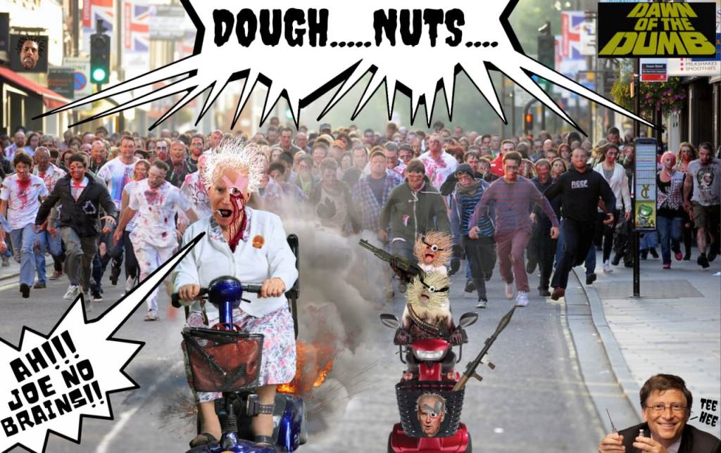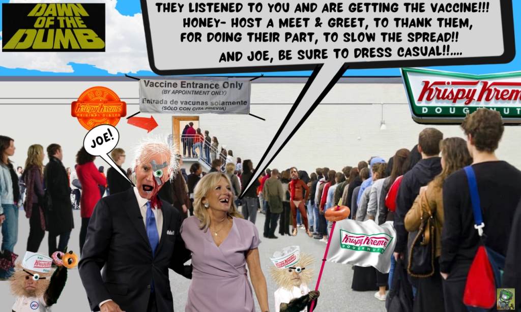 For the price of a doughnut, these zombies are being mind controlled enough to go get their DNA altered for some sugah bread.
