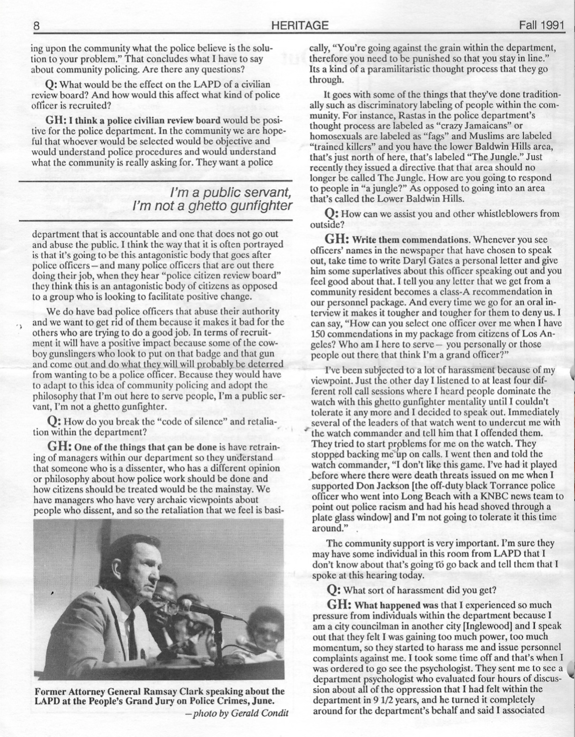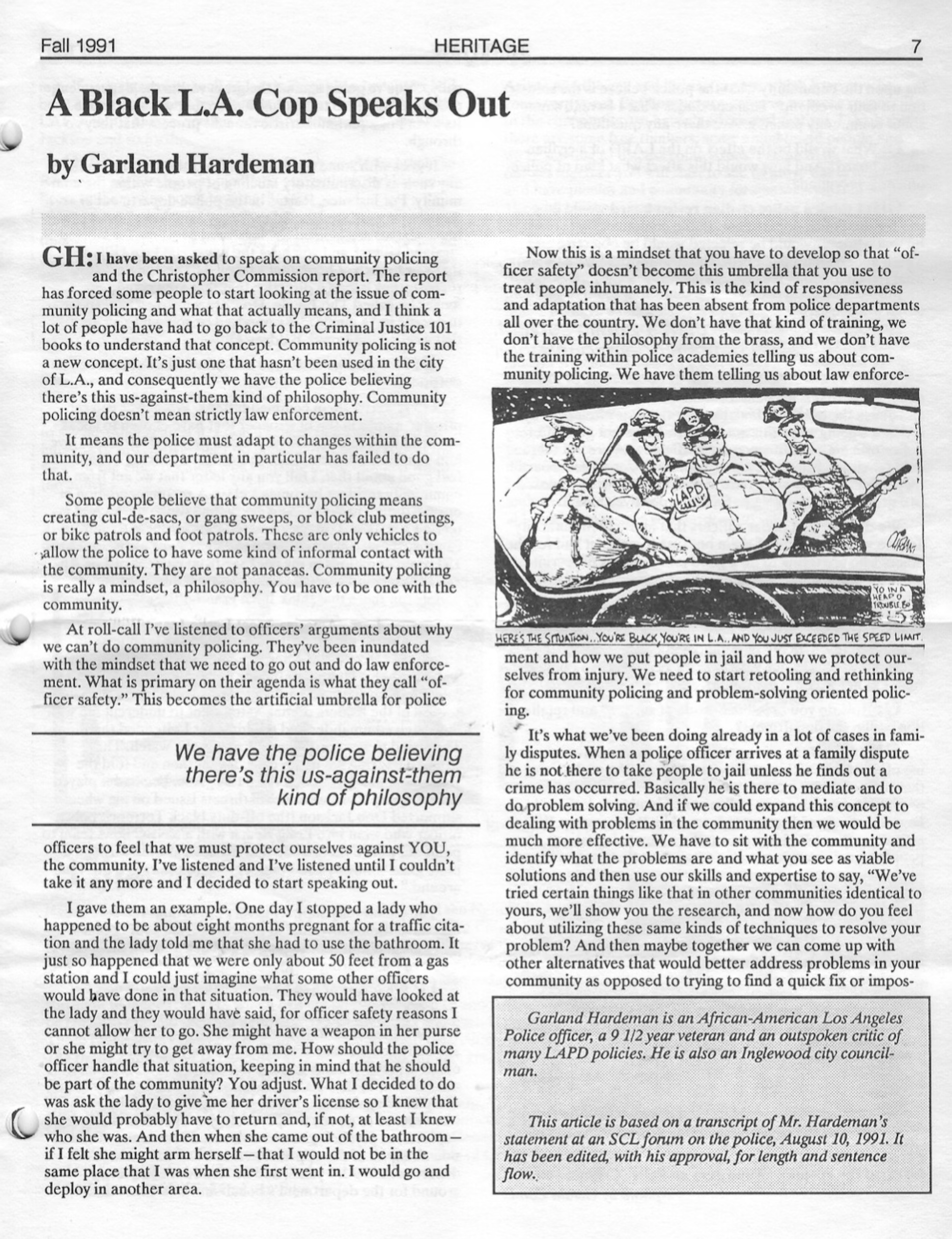 The ‘author’ of this article is Garland Hardiman, who at the time it was written and published was an active and sworn Los Angeles Police Officer who also worked Southwest Division while I was assigned there as a uniformed Patrol Sergeant.”