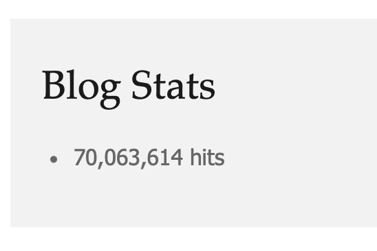 WordPress won’t show you this, but there are over 70 million hits on this blog: